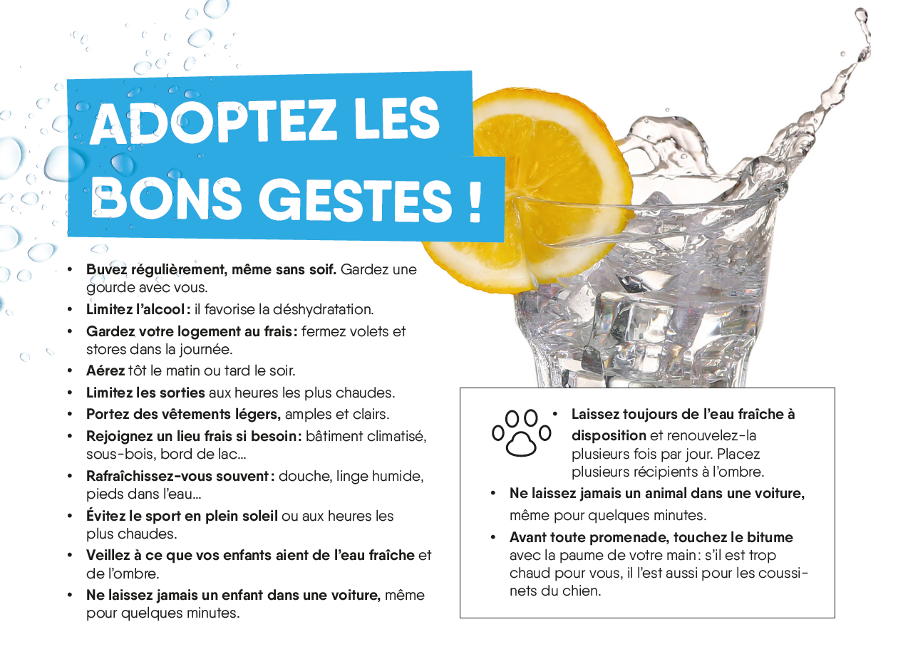 • Rafraîchissez-vous souvent : douche, linge humide, pieds dans l’eau…